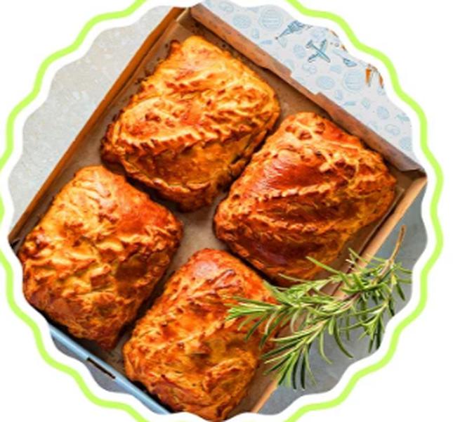 Состав: Новгородский курник с курочкой, рубленным яйцом и рисом, Московская кулебяка с фаршем из отборного мяса, Кубанский чинёнок с брокколи, томатами и болгарским перцем, Рязанский творожник с творогом и вишней