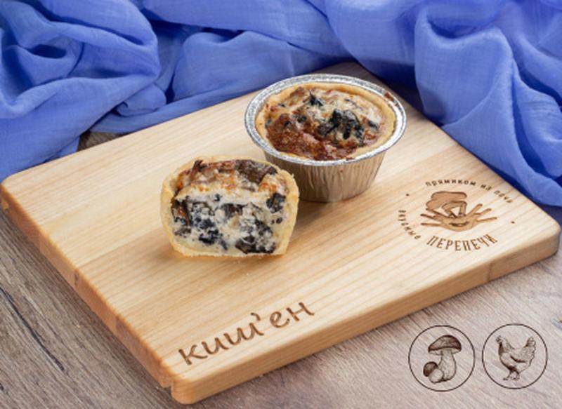 Состав: Киш'ен с нежным картофелем, слегка обжаренным куриным филе, ароматными шампиньонами. Сытно и вкусно! Киш'ен выпекается из песочного теста!