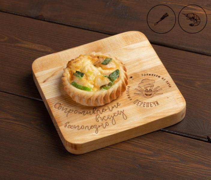 Состав: Перепечи с креветками и нежной яичной заливкой. Перепечи выпекаются из бездрожжевого сдобного теста!