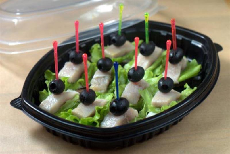 Состав: Ржаной тост с селедочкой, маслиной и свежим листиком салата.