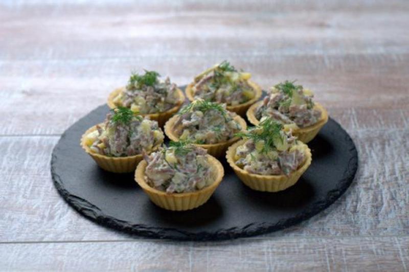 Состав: Язык отварной, огурцы соленые, картофель, укроп, майонез. 7 шт