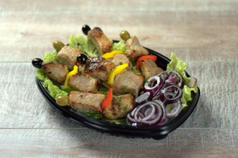 Состав: Свиная шейка, болгарский перец, репчатый лук, лимон, маслины, перец черный молотый, соль. 3 порции по 2 штуки.