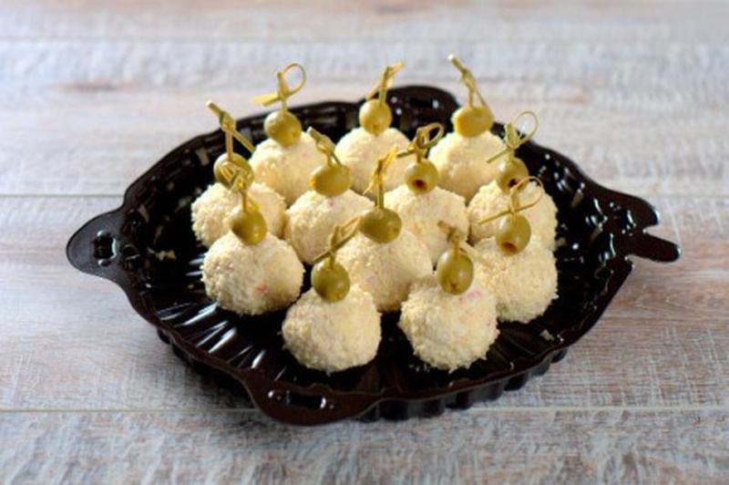 Состав: Крабовые палочки, яйцо отварное, сыр российский, оливки, кунжут, майонез. (12 штук)