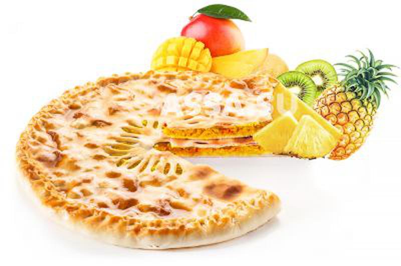 Состав: Мука пшеничная высшего сорта, вода, масло растительное, соль,киви,ананас,манго,загуститель