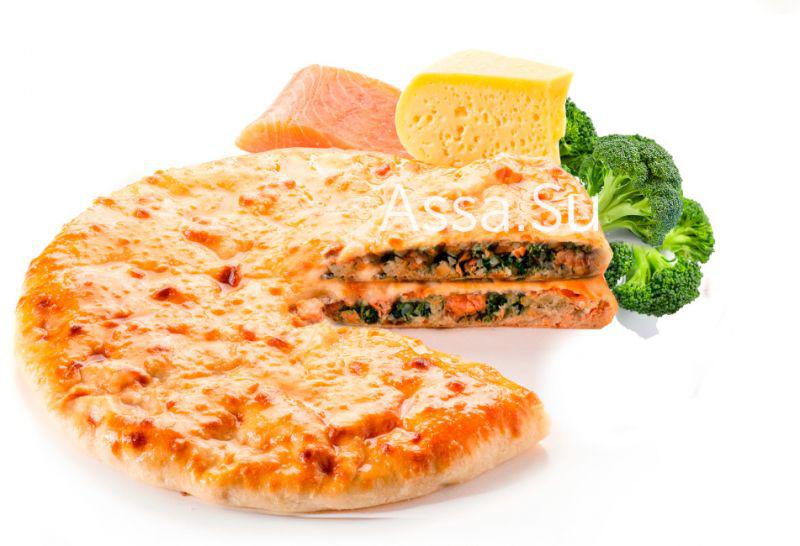 Состав: Фирменный осетинский пирог с нежнейшим сочетанием вкусов мяса деликатесной семги, ароматным брокколи и мягкого осетинского сыра.